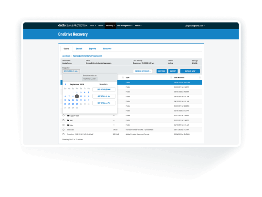 Protect OneDrive, SharePoint, Teams, Gmail, Google Contacts and more with 3x daily, automated backups or perform additional backups as needed, at any time.
